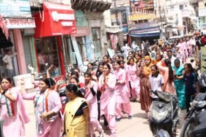 ता ने आज अपने महाविद्यालय के लिए प्रस्थान किया तो क्या यहाँ शानदार स्वागत बिना ही आगमन हो? संस्था ने स्वामी गोपाल दासजी की प्रतिमा को वन्दन करते हुए, ढोल-ढमाके के साथ, खुले वाहन में बैठाकर, शानदार विजय-जुलूस के बीच, नगर के मुख्य मार्ग से होते हुए, उल्लासपूर्वक निकिता का महाविद्यालय प्रांगण में प्रवेश कराया। बैंड की ओजपूर्ण स्वर-लहरियाँ, देशभक्ति के तराने, दो-दो की कतारों में सजी छत्राओं द्वारा गगनभेदी उद्घोष, नगरवासियों द्वारा जगह-जगह पुष्पवर्षा, प्रबन्ध समिति और स्टाफ की पदयात्रा में सक्रिय सहभागिता ने एक उत्सव का रूप ले लिया। महाविद्यालय प्रांगण में पहुँचने पर, छात्रायें विभिन्न धुनों पर प्रसन्नतापूर्वक देर तक थिरकती रहीं।