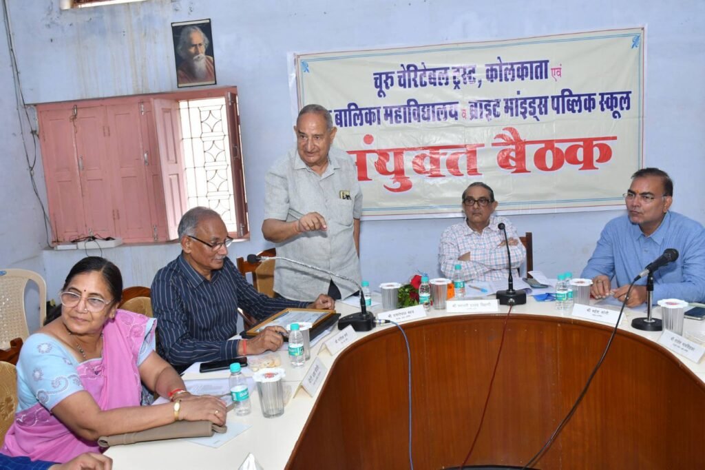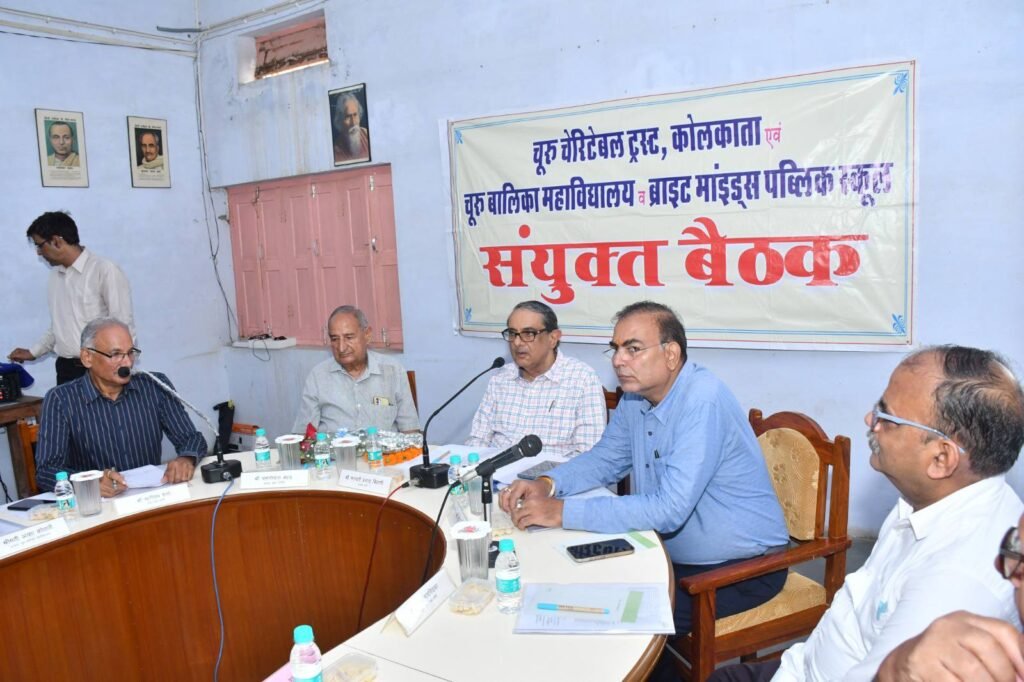 31अगस्त, 2025 को चूरू चेरिटेबल ट्रस्ट, कोलकाता की चूरू बालिका महाविद्यालय व ब्राइट माइंड्स पब्लिक स्कूल के साथ वार्षिक संयुक्त बैठक चूरू में महाविद्यालय परिसर में ट्रस्टी श्रीमान भगवती प्रसाद बियानी सा की अध्यक्षता में सम्पन्न हुई। इस आयोजन की प्रतीक्षा रहती है। इसमें सम्पन्न गतिविविधियों के मूल्यांकन, वर्तमान के निरीक्षण और भविष्य के निर्धारण का अवसर होता है। महाविद्यालय के लिए यह आयोजन किसी उत्सव से कम नहीं। सदैव की भांति इस बार भी माननीय अतिथियों का शुभागमन, संस्था का अपनेपन से निरीक्षण, प्रबन्धन के साथ सार्थक संवाद, विमर्श और संरक्षण भाव से सहयोग और अन्त में सहभोज के साथ समापन! यही इस आयोजन का वैशिष्ट्य है।